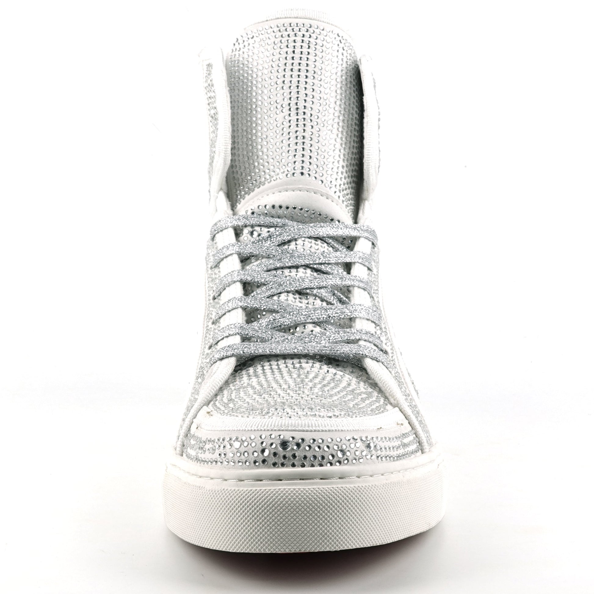 FI-2402 White Suede Clear Rhinestones High Top Sneaker Encore by Fiesso