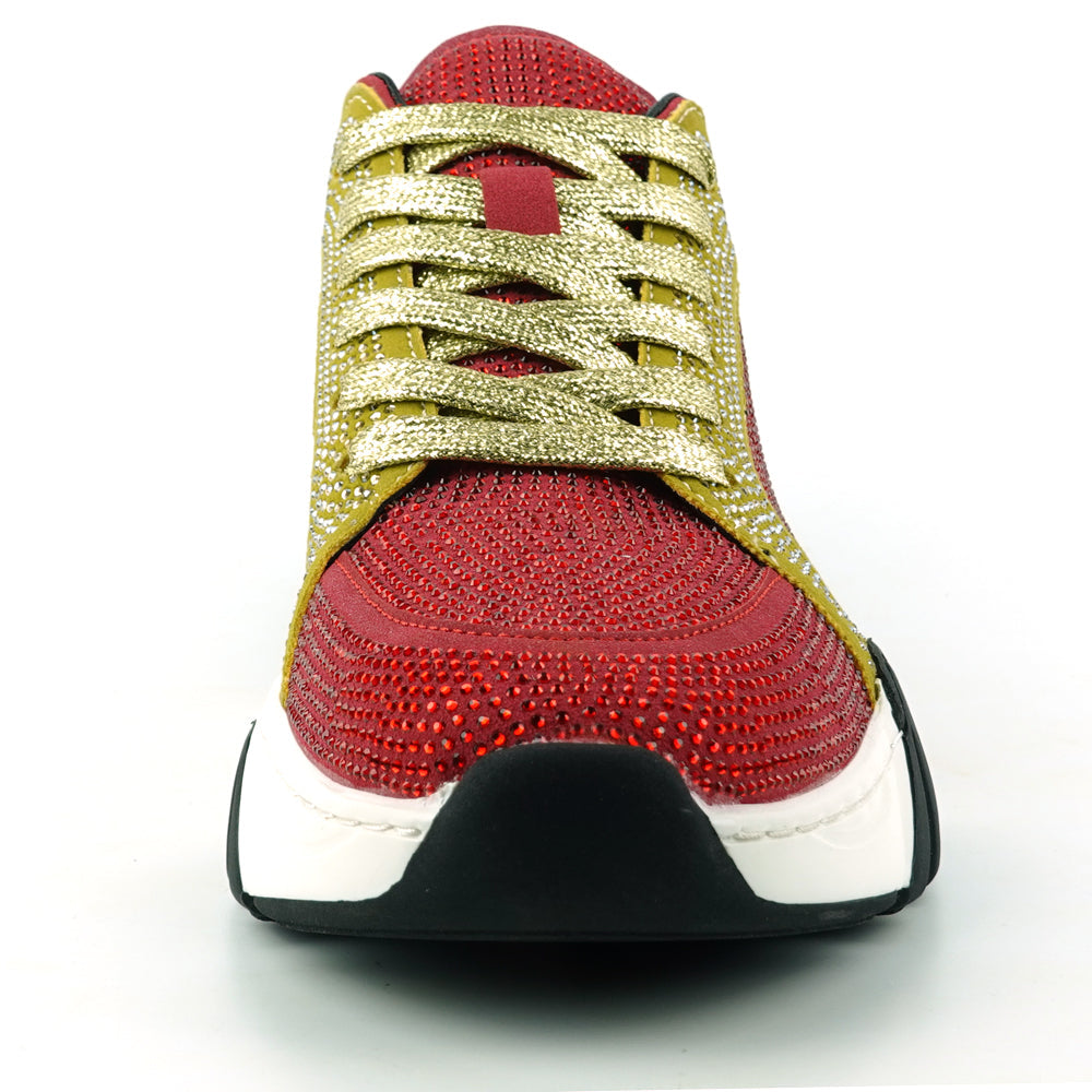 FI-2407 Red Gold Suede Rhinestones Lane up Sneaker Encore by Fiesso