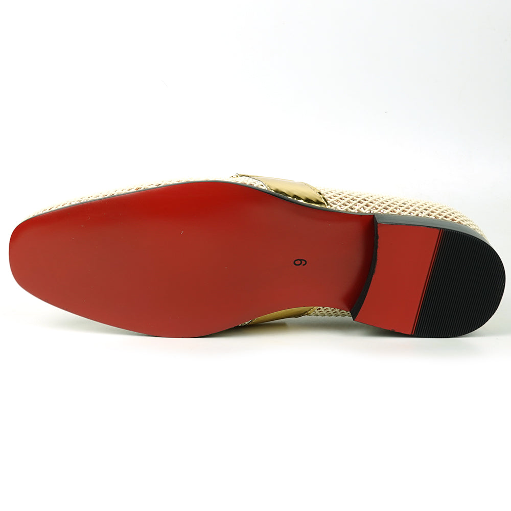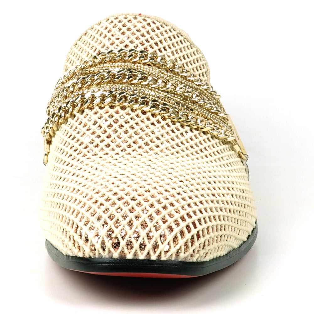 Fiesso by Aurelio Garcia FI7528 White Gold Glitter With Gold Chain Slip on Loafer Fiesso shoes designed by Aurelio Garcia are highly comfortable and hand crafted from top quality leather with high fashion in mind. Features the highest style and trendy looks on men's fashion.