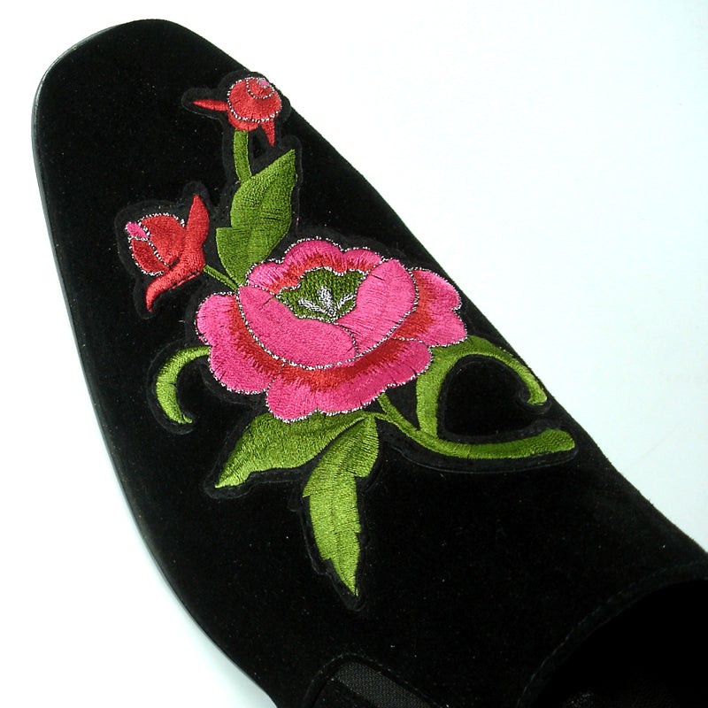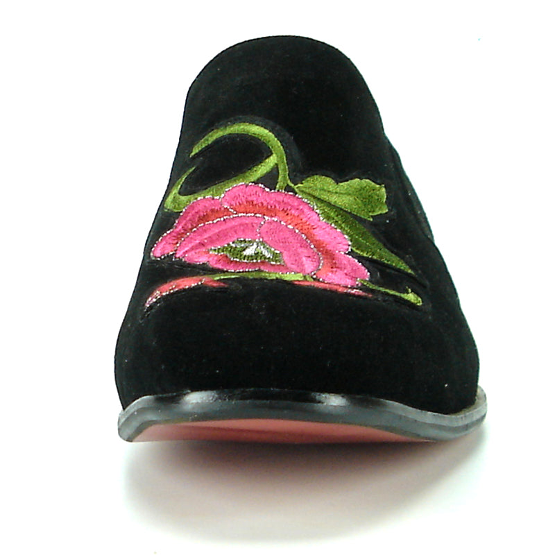 FI-7085 Black Suede with Embroidered Rose Slip on Fiesso by Aurelio Garcia