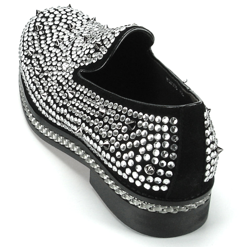 FI-7119 Black - Spikes and Rhinestones Fiesso by Aurelio Garcia Suede Slip on