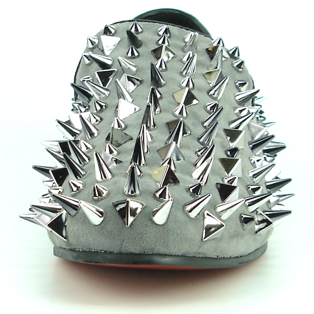 FI-7239-S Grey Suede With Silver Spikes Slip on Loafer Fiesso by Aurelio Garcia