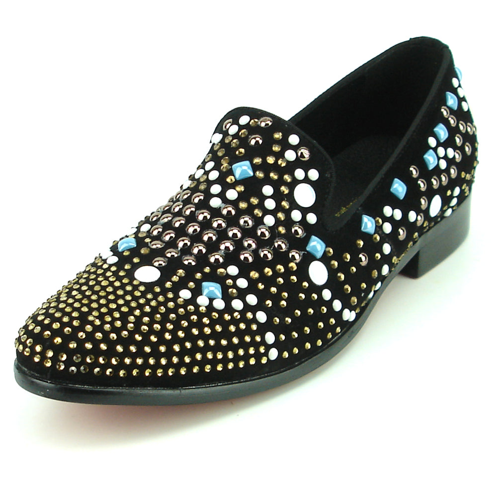 FI-7343 Black Suede Multi Color Studs Slip on Loafer Fiesso by Aurelio Garcia